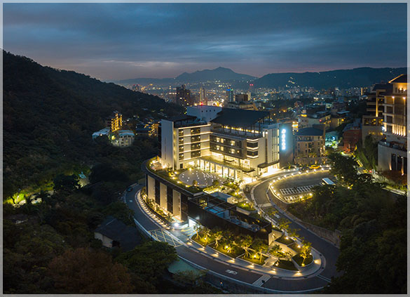 北投亚太饭店高雅清幽自成一格,建筑师广泽荣一巧妙的将外界视野阻隔於建筑之外,形成亚太饭店独揽「丹凤山」的沉静之美,郁郁葱葱的山林景象,偶而浮云掠过,十分疗癒、也极度迷人,更为北投亚太饭店「静则养息」作了最佳的注解。