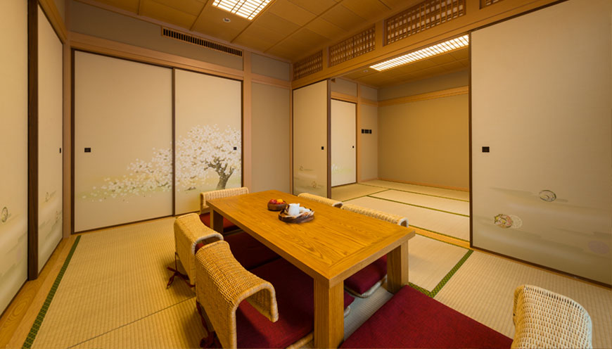 広々とした快適な約30坪の室内外の空間で、親子三代またはご友人で集う憩いの場所を提供しています。伝統的な日本式のふすまで仕切られた2つの空間は、お茶休憩スペースと休憩スペースとなっており、温もりと明るい雰囲気の空間で、ご家族やご友人との会話のひと時をご満喫いただけます。